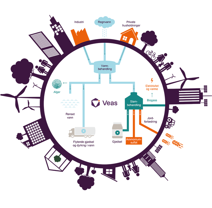 Veas jobber for null uønskede utslipp. Ressursene vi henter ut av avløpsvannet blir i dag til fjernvarme, gjødsel og biogass. Det er bra for klimaet, miljøet og for lommeboken til innbyggerne.